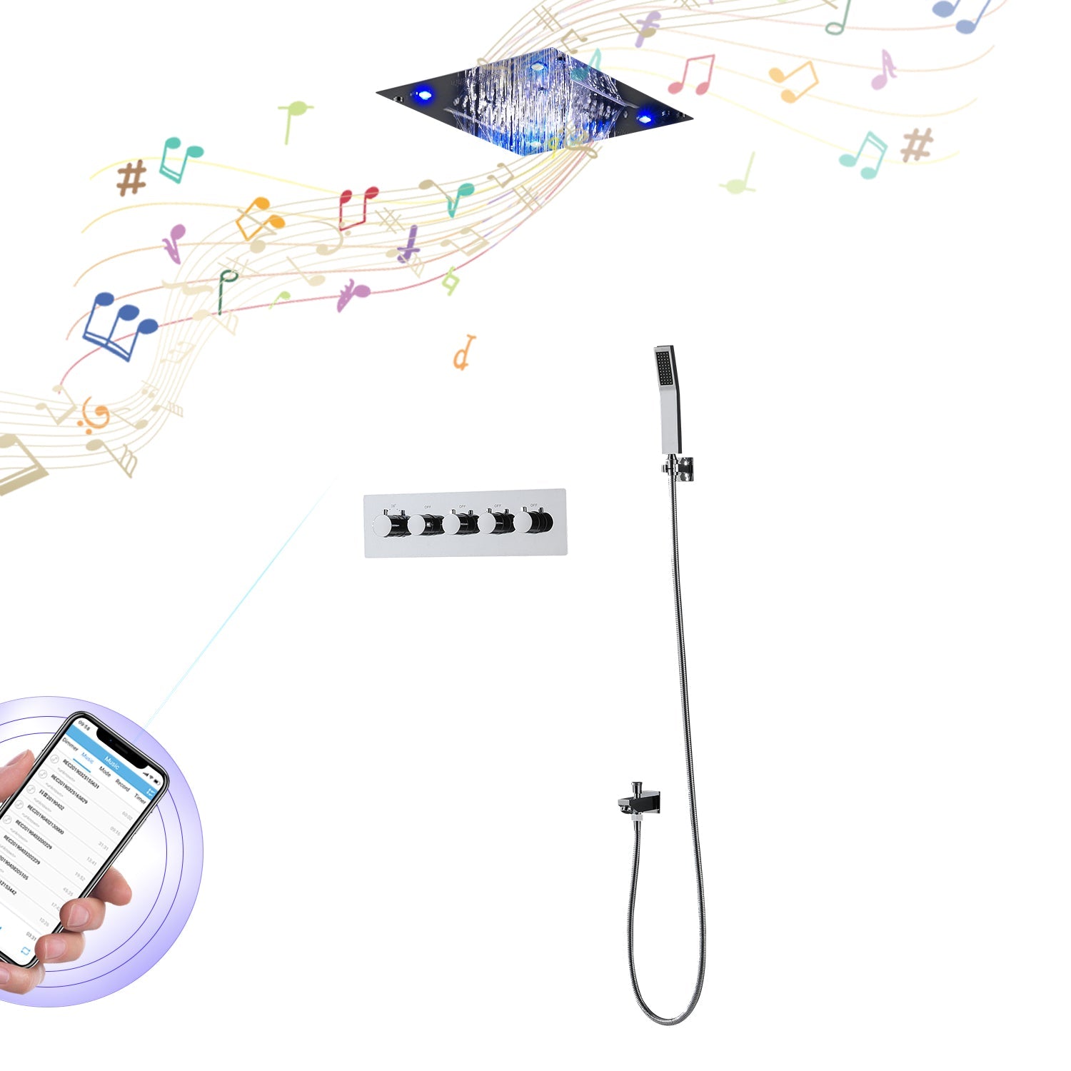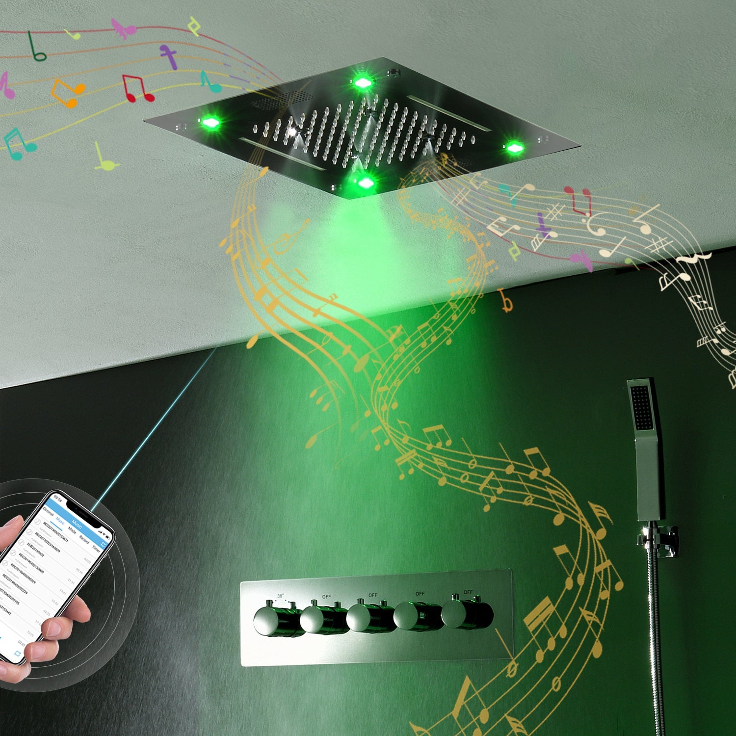 Sedona 16"x"16" Luxury Thermostatic LED Bluetooth Music Shower Set with Rain,Waterfall & Mist Spray Functions.