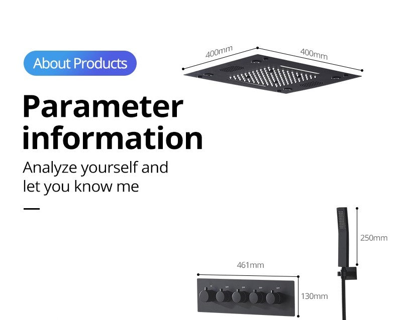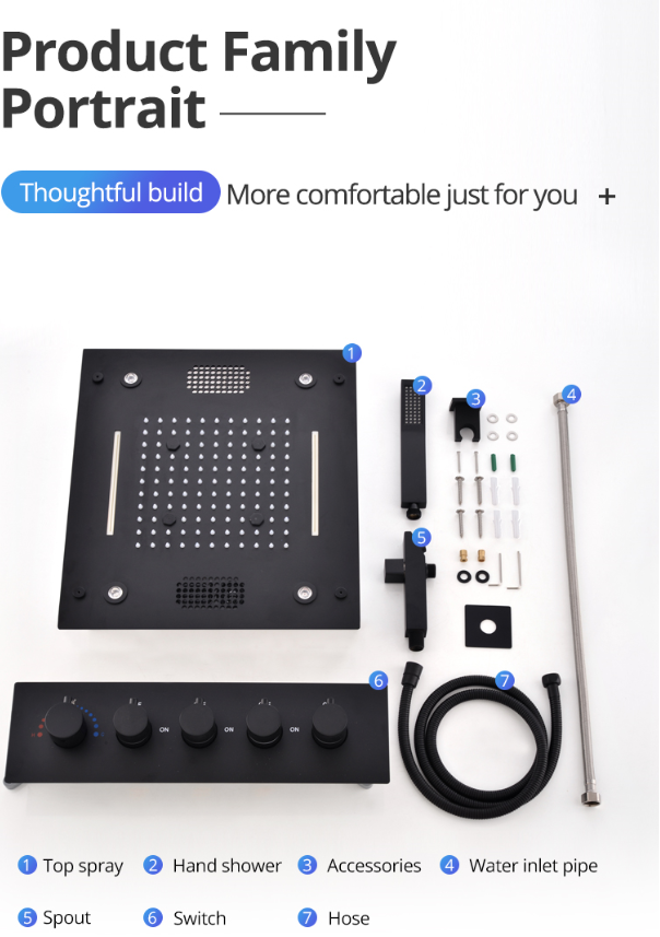 •  LED Lights (64 colors): Enhance the ambiance of your shower with a variety of color options, creating a mood-setting and relaxing experience