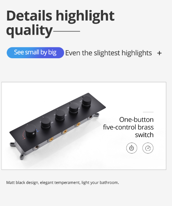 • Thermostatic Valve: Maintains a consistent water temperature for ultimate comfort and safety, preventing scalding.