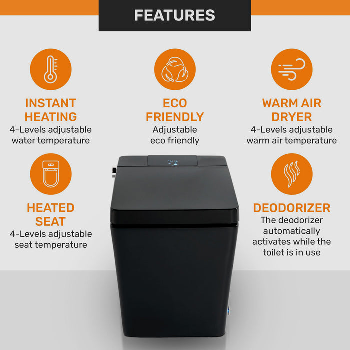AVINDI| Smart One-Piece Toilet Square Shape Luxury Resort Style Floor Mounted Remote Control Smart Toilet - MATT BLACK is backordered and will ship as soon as it is back in stock.