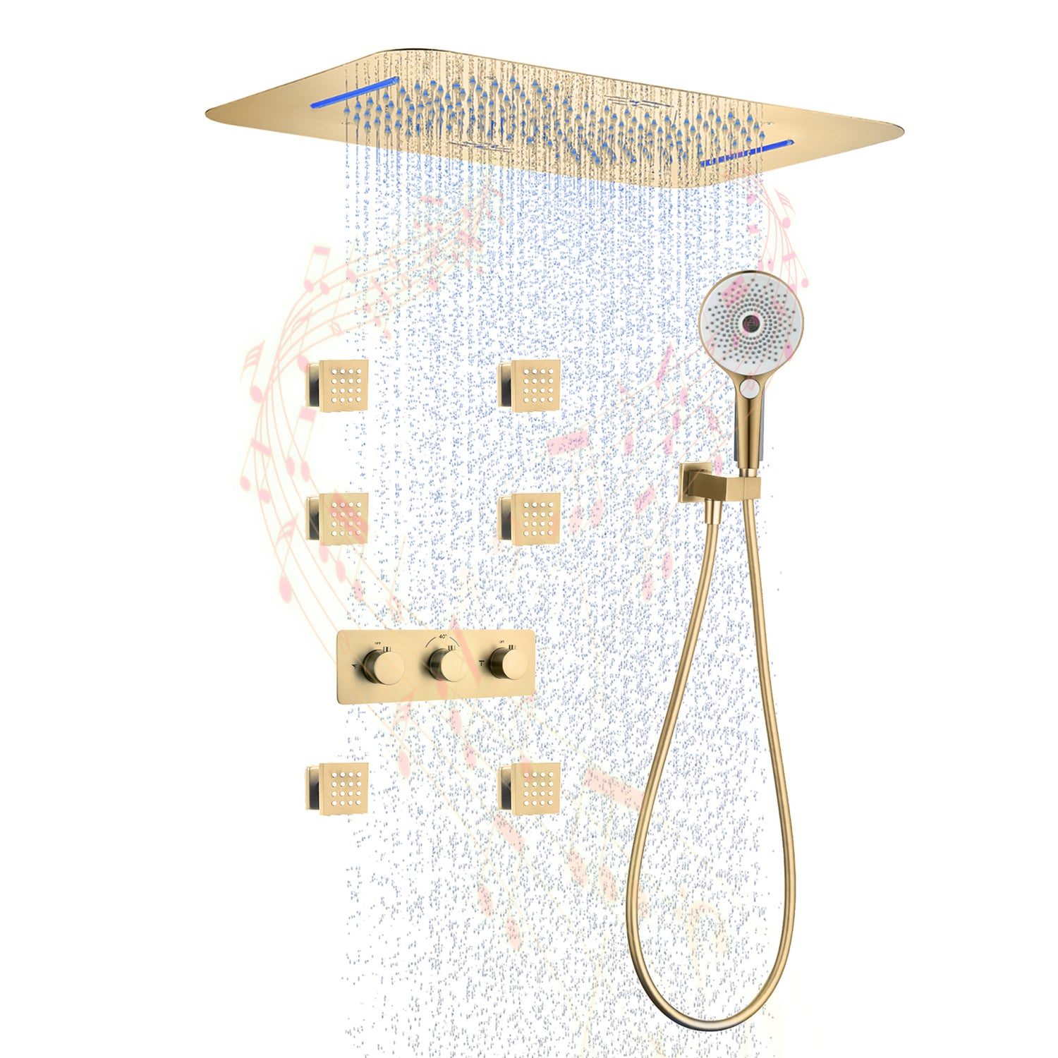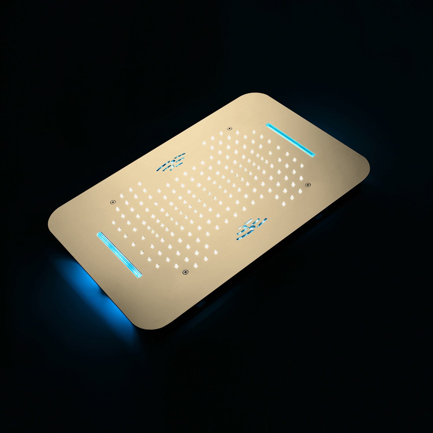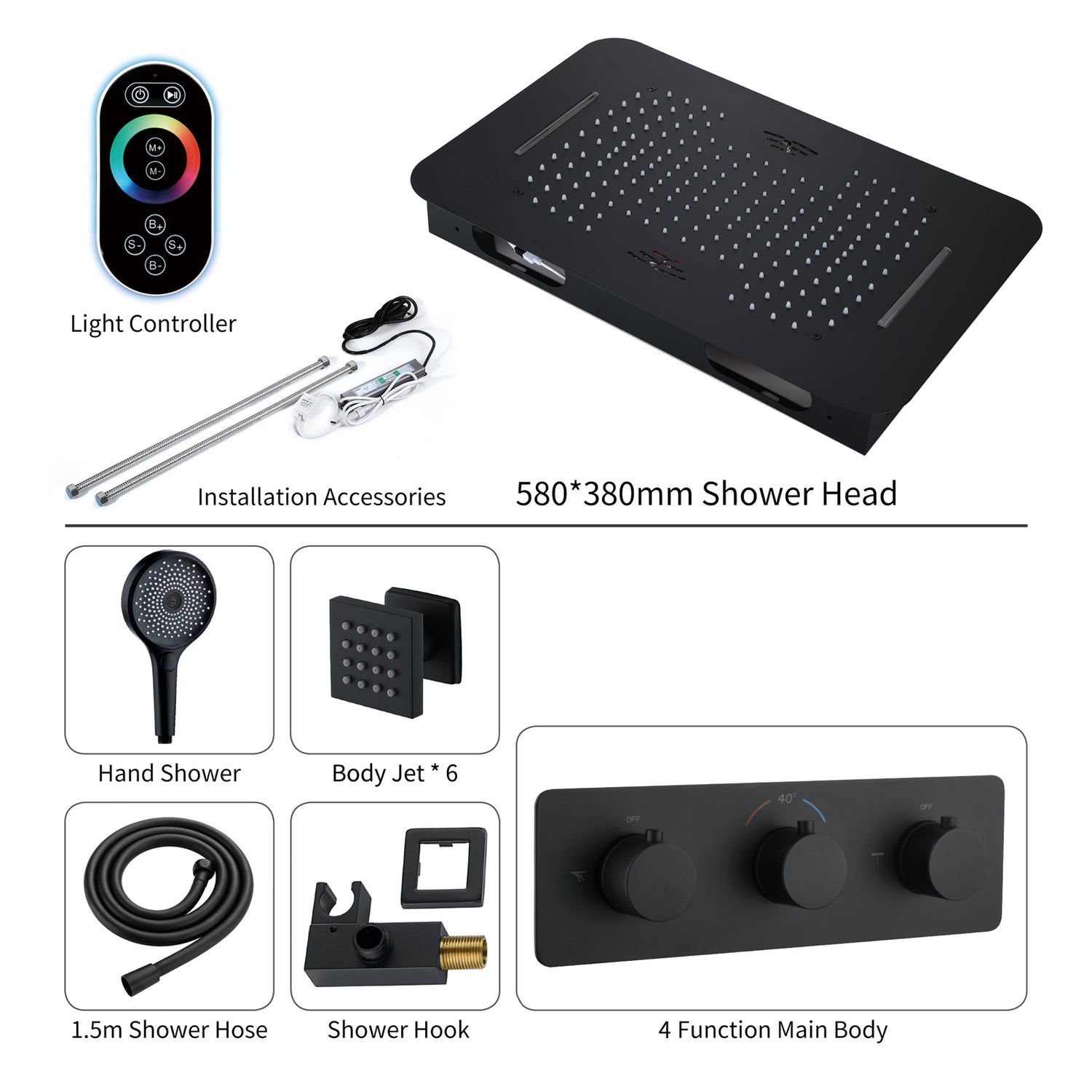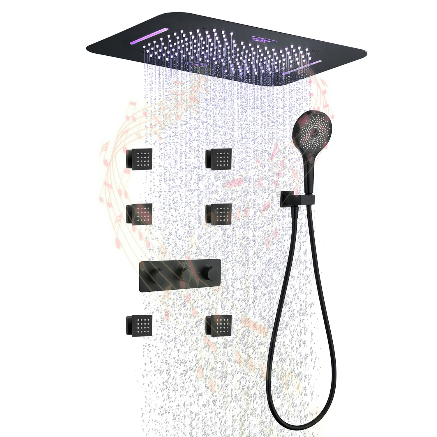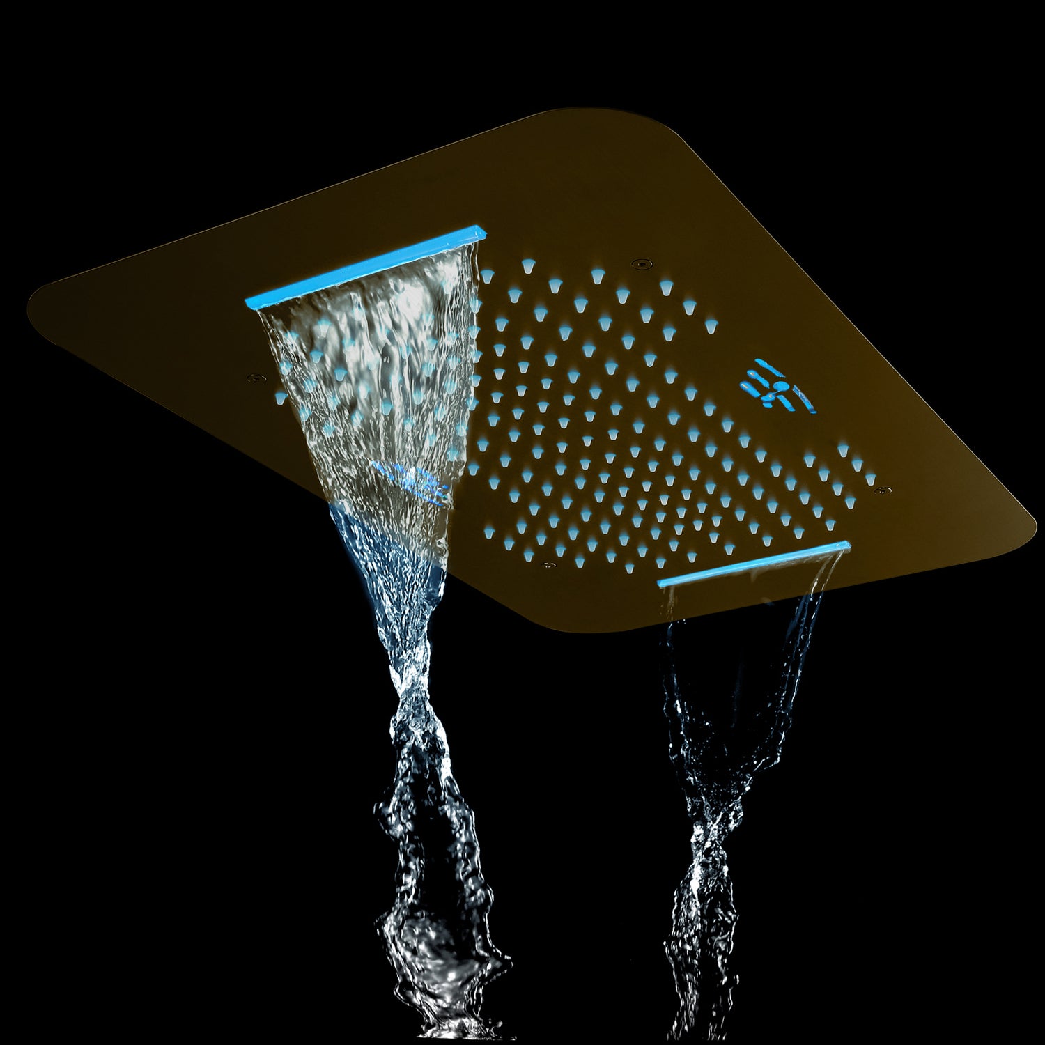 This 23" x 15" LED ceiling shower provides a steady pour of water with rain and waterfall functions 6 body relaxing body jet, Spouts, and Hand shower.