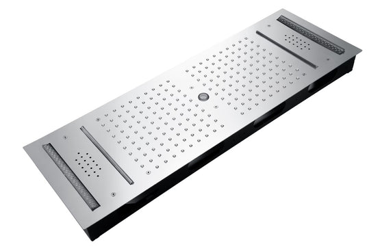 - The centerpiece of this set is the oversized 36-inch ceiling showerhead. It offers multiple functions: