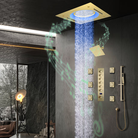 FAVOR | 23" Ceiling Mounted Complete Thermostatic LED Music Shower...