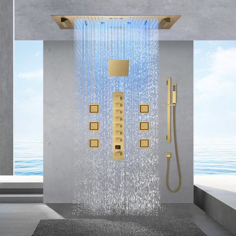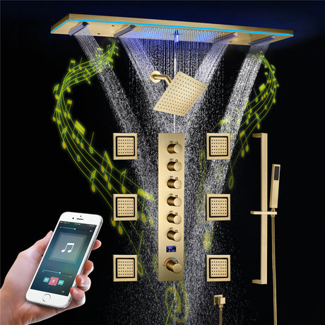 23" Gold Complete Shower set Rain & Waterfall Functions. 2 Bluetoo...
