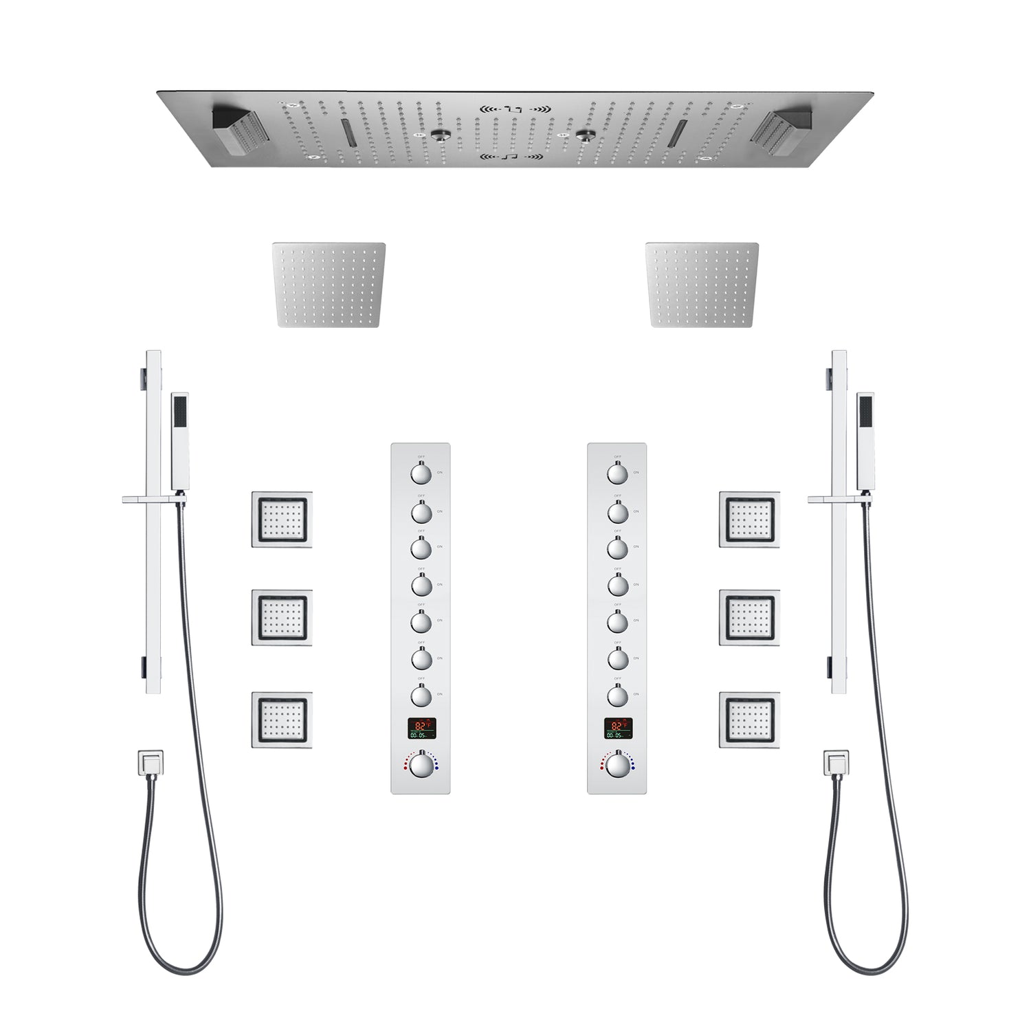 Colorado|36"X 16" In Dual Showerhead 7 Functions Complete Led Music Shower System 6 Body Jets 2x Wall Mounted Rainfall Showerhead