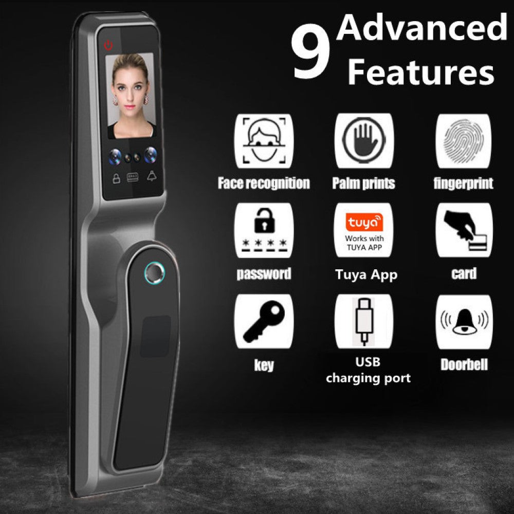 High Security Fully Automated Face & Palm Recognition , Biometric Fingerprint ,Wi-Fi App Remote Unlock ,Passcode , IC Card and Mechanical Key Door Lock.