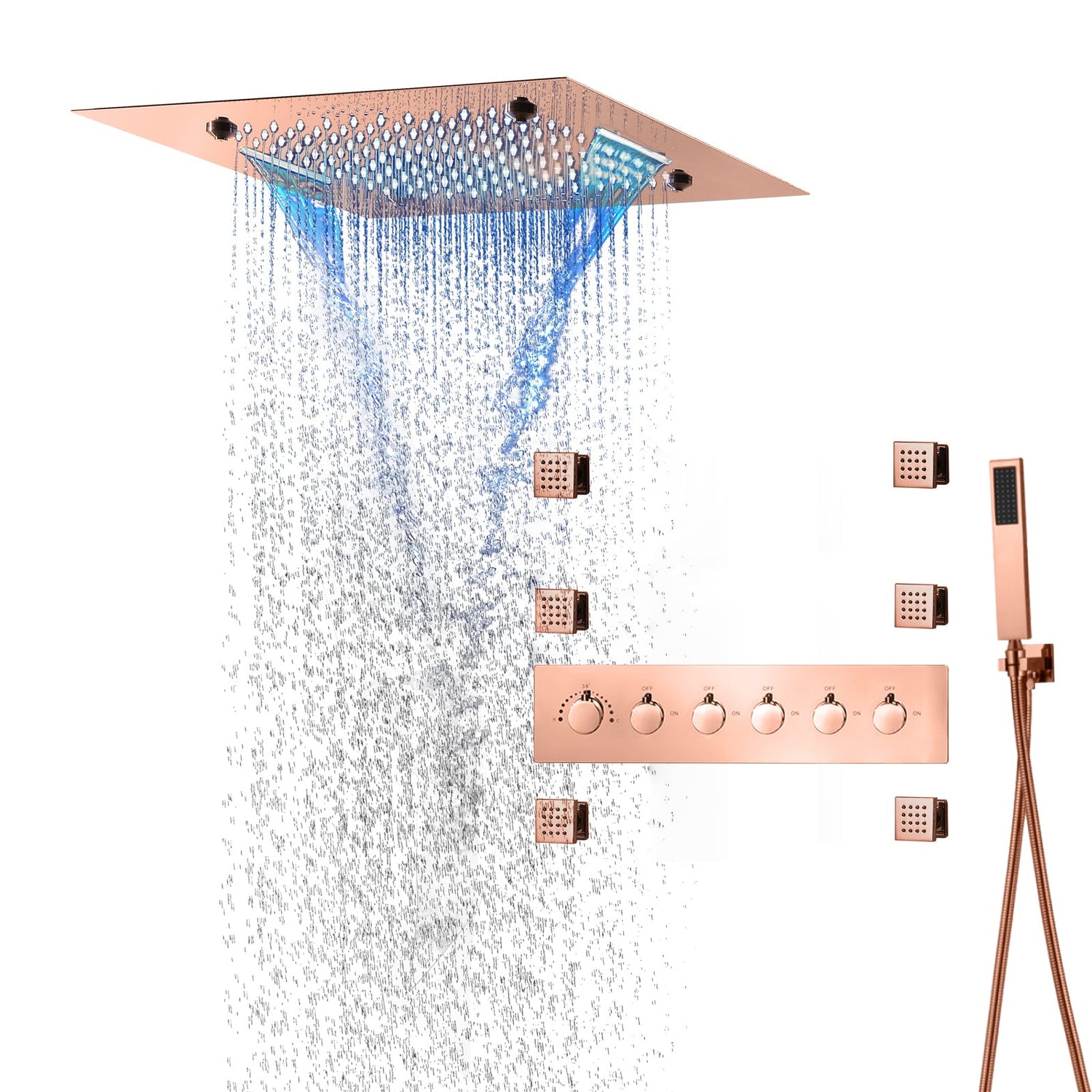 MONACO Rose Gold | 20" Complete Luxury LED Music shower set Rainfall , Waterfall, Mist Spray 6x Body Jets