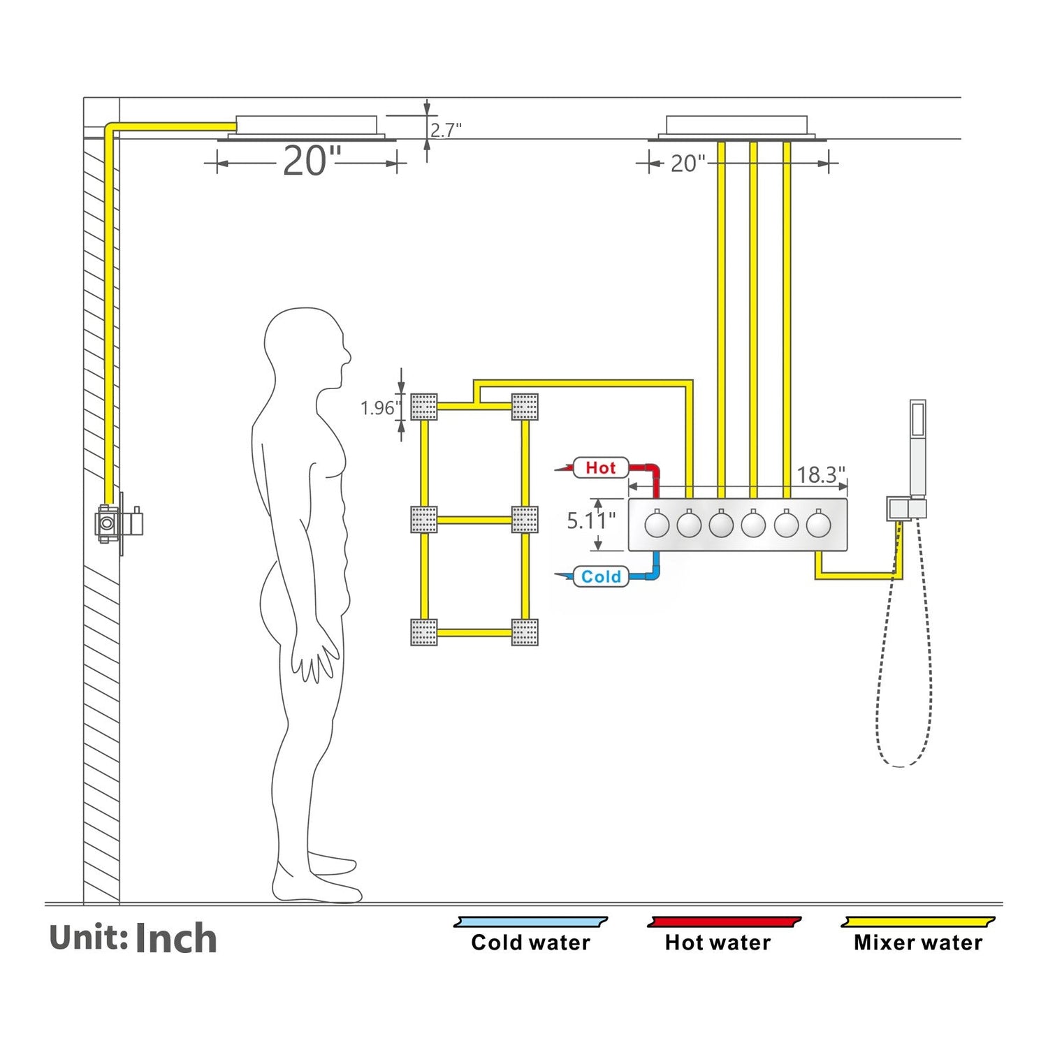 - Shower Head Width - Side to Side : 20"