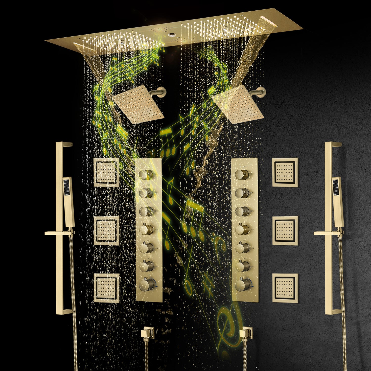 Multnomah| 36" In Dual Showerhead Complete Led Music Shower Set 6 Body Jets 2x Wall Mounted Rainfall Showerhead