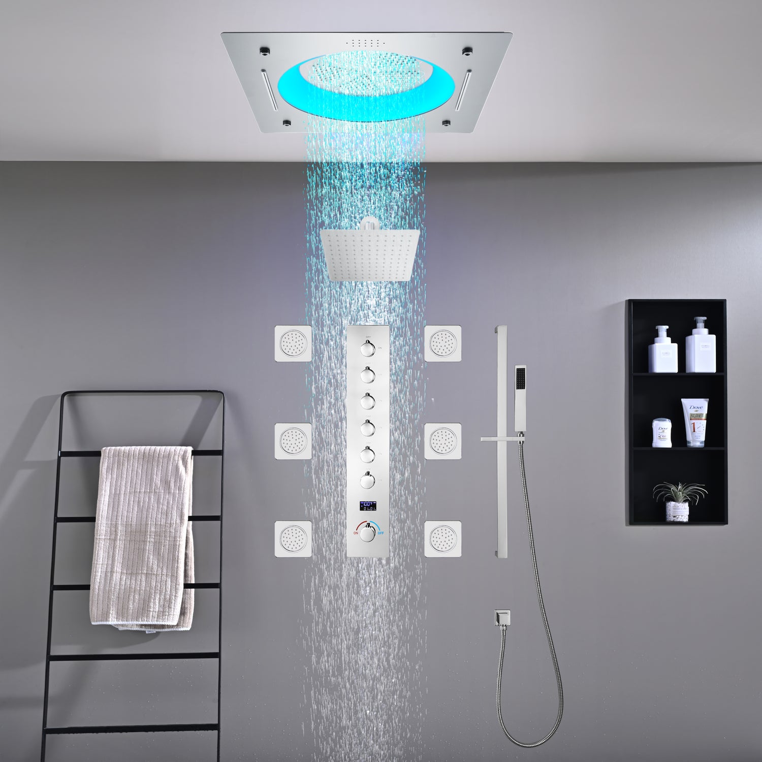 ORCHID|22"COMPLETE SHOWER SYSTEM CEILING MOUNT SHOWERHEAD WITH 6 BODY JETS AND WALL MOUNTED SHOWERHEAD