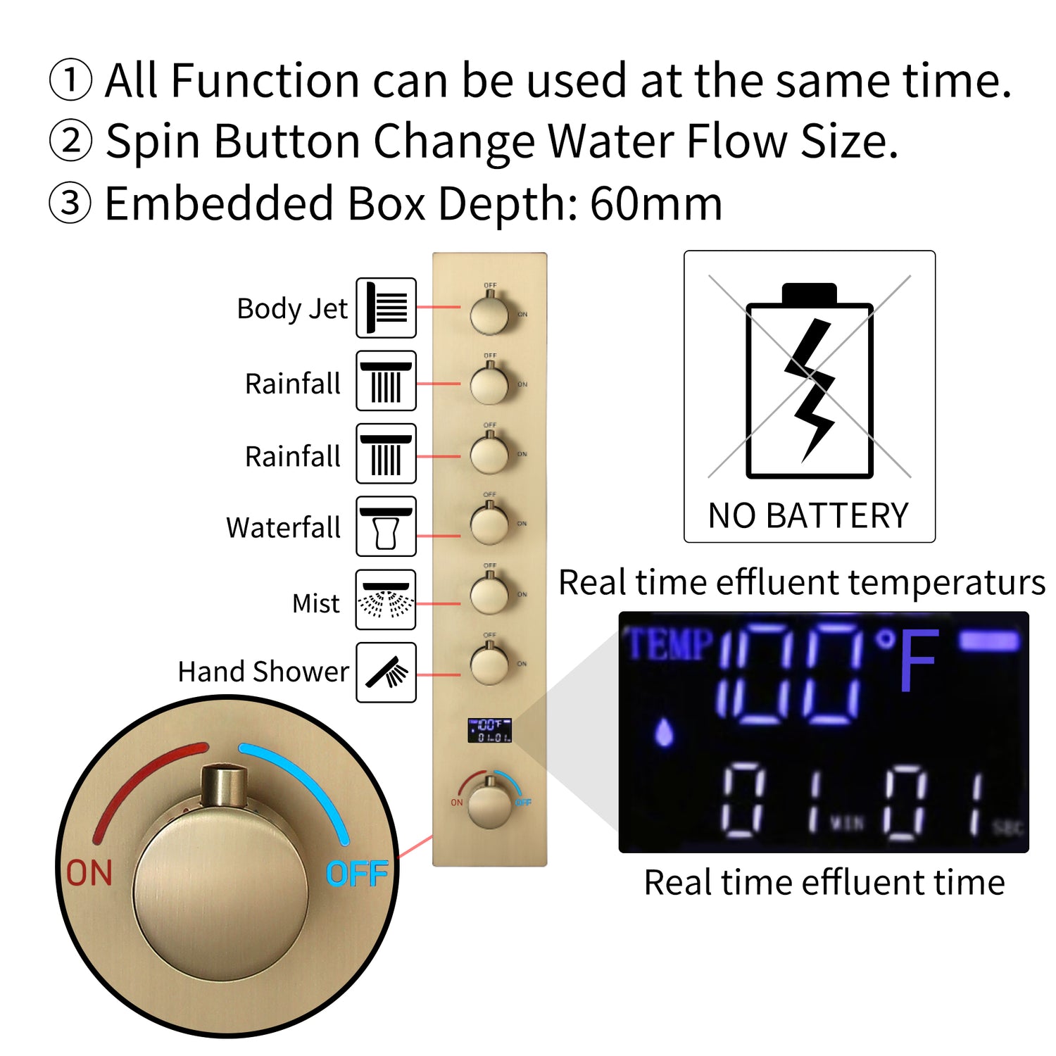 ORCHID|22"COMPLETE SHOWER SYSTEM CEILING MOUNT SHOWERHEAD WITH 6 BODY JETS AND WALL MOUNTED SHOWERHEAD - BRUSHED GOLD is backordered and will ship as soon as it is back in stock.